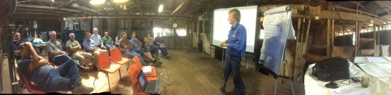 Photo: Andrew Speirs from Meridian Ag discussing productive pastures for low rainfall areas at Kaarimba