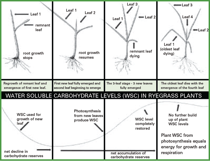 Source: Donaghy DJ, Fulkerson WJ (1999). Optimum management of ryegrass-based pastures using plant regrowth stage. Heritage Seeds Pty Ltd. Annual Communication Brochure. 13-16.