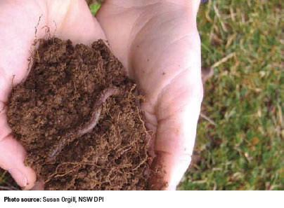Earthworms are a good indicator that soil conditions are suitable for microorganisms. Sample moist soil at the end of winter / early spring. In the high rainfall zone, more than 10 earthworms per spadeful (20cm by 20cm by 10cm deep) indicates an active biological system — that is a stocking rate of more than 2.5 million earthworms per hectare. An earthy smell is also a good indicator as this suggests active and healthy actinomycetes (beneficial soil bacteria).