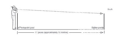The trayback photograph is taken standing on the back of a ute tray or on a step ladder. The vehicle (or step ladder) is positioned at the photopoint post (Figure 2). Focus the middle of the viewfinder on the base of the sighter post located 10m to the south of the photopoint post. The photopoint post and the sighter post are left permanently in place.