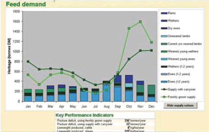 The tool can be used to test various scenarios for varying the feed supply curve, or animal demand curve. Impacts of management actions such as the following can be investigated:
